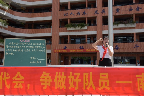 深入貫徹落實習(xí)近平總書記致少先隊建隊70周年賀信精神,向第八次全國少代會獻禮,切實增強少先隊員的光榮感和組織歸屬感。6月4日上午,南頭華暉學(xué)校隆重舉行“慶六一”少先隊入隊儀式。經(jīng)同學(xué)申請,中隊輔導(dǎo)員審批,學(xué)校大隊委同意,140多名同學(xué)被接納為光榮的少先隊隊員?,F(xiàn)在,他們精神抖擻、滿懷喜悅之情地排在了隊伍的前面,即將參加他們?nèi)松械谝淮我饬x重大的、激動人心的儀式——加入中國少年先鋒隊。