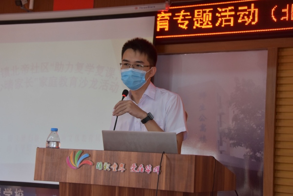 活動開始,學校專職心理教師黃林老師作了題為《用愛守護,從“心”出發(fā)》心理健康專題講座。黃老師畢業(yè)于四川警察學院應用心理學專業(yè),國家三級心理咨詢師,專業(yè)知識扎實,對青少年的心理發(fā)展和應對策略很有心得。在講座中,黃老師圍繞關心孩子的心理變化,成為孩子最重要的支持者;提供心理支持,做好孩子返校的協助者;改善親子溝通,成為孩子成長路上的陪伴者;識別孩子危機信號,協同教育做孩子心理健康促進者四個方面進行講課。黃老師的講座深入淺出,生動出彩,既有豐富的理論知識,又結合現實生活列舉了大量生動的事例,讓在場的每一個人都深受啟發(fā),受益匪淺。