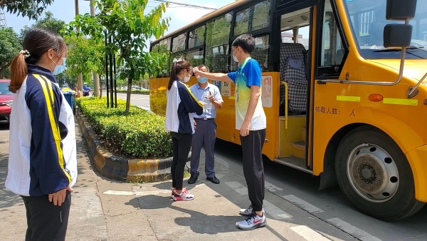 演練中,校園從上課鈴聲、值日崗位安排、場地設(shè)施、提示宣傳標語等全部按照開學后的規(guī)格進行布置?!皩W生”、“家長”和老師們也嚴格按照《中山市校園疫情防控衛(wèi)生指引》、《南頭華暉學校2020年春季學期防疫工作及開學常規(guī)工作方案》、《南頭華暉學校教師一日工作生活指南》、《疫情期南頭華暉學校學生學習生活一日指南》進行全流程模擬演練。家長送到學校(乘坐校車到達學校)、進入校園、晨檢上課、課間管理、午餐午休管理、分批錯峰放學、行走路線、與家長交接、校車管理、宿舍管理等,認真執(zhí)行每一步每一個細節(jié),沒有半點馬虎。有時,為了讓師生們在視頻中看得更直觀、更明白,“演員們”冒著烈日和酷熱,一個步驟或動作往往要重復多次,從不同角度進行拍攝。一個場景下來,從“導演”到“攝影”、“演員”、“場務(wù)”,個個都是汗流浹背。