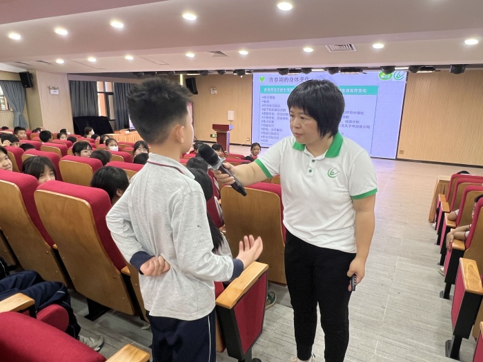 接著,郭老師通過現(xiàn)場(chǎng)問答、案例分析等多種形式,向同學(xué)們介紹了青春期身體以及心理的變化,教育學(xué)生學(xué)會(huì)“悅納自我 尊重他人”,正視青春期心理變化,交往應(yīng)有度,呵護(hù)心理成長(zhǎng)。在講座的過程中,郭老師一直鼓勵(lì)學(xué)生克服羞澀,積極參與,踴躍發(fā)言。郭老師的講座淺顯易懂,生動(dòng)有趣,氣氛活躍,贏得學(xué)生們一陣陣掌聲。