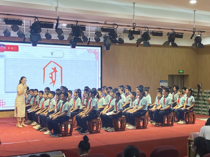 最后,民安小學(xué)梁姍姍老師進(jìn)行《過零丁洋》的傳統(tǒng)文化課例展示。梁老師以家國門——神州堂——華夏室為主線出發(fā),從愛漢字、愛詩歌、愛祖國的角度帶領(lǐng)學(xué)生了解“家”“國”兩個漢字的由來及含義,并通過多種方式吟誦《過零丁洋》感悟詩中豐富的情感。梁老師一步步從古到今鋪墊名人愛國愛家的精神,以此激發(fā)學(xué)生身上的家國情懷。