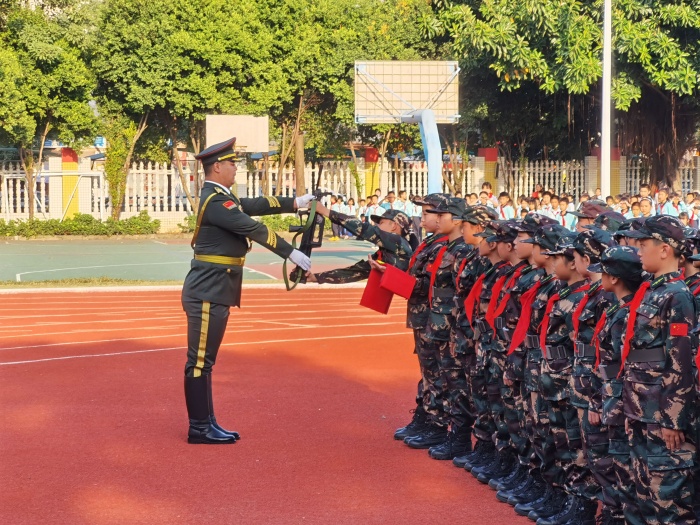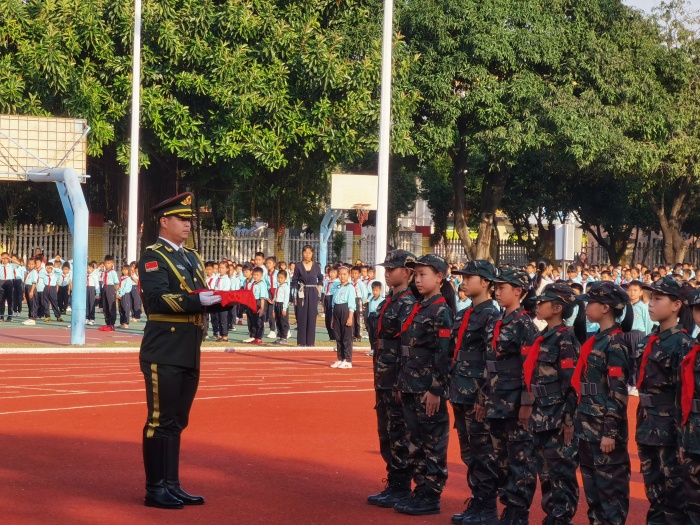 授銜儀式后,南頭鎮(zhèn)教育和體育事務(wù)中心主任謝桂華勉勵全體師生,要向?qū)W習(xí)軍人們的紀(jì)律作風(fēng),以高標(biāo)準(zhǔn)要求自己,從小養(yǎng)成良好習(xí)慣,樹立遠大理想,愛祖國,愛家鄉(xiāng),長大后為祖國做出自己應(yīng)有的貢獻,向國旗致敬!