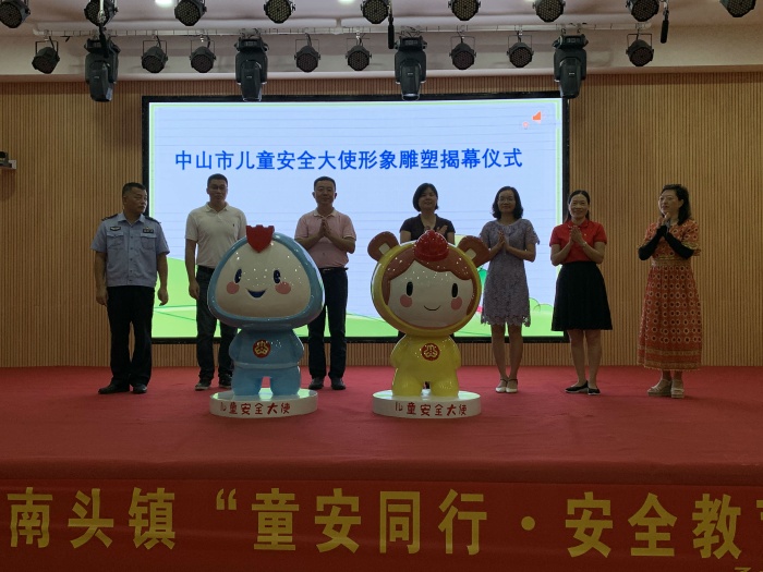 巫潔云部長一行人首先來到報(bào)告廳,為中山市兒童安全大使童童安安形象揭幕。“童童”,是個穿著黃色衣服溫柔善良可愛的女孩子,黃色象征著警示和光明,帽子上裝飾著代表安全在心頭的安全帽?!鞍舶病保莻€穿著藍(lán)色衣服活潑可愛、熱心助人的男孩子,藍(lán)色象征和平安全,戴著裝飾著代表保護(hù)的盾牌三角形的帽子,寓意安全和保護(hù)。它們以憨態(tài)可掬的形象、甜美可愛的笑容贏得了孩子們的喜愛。