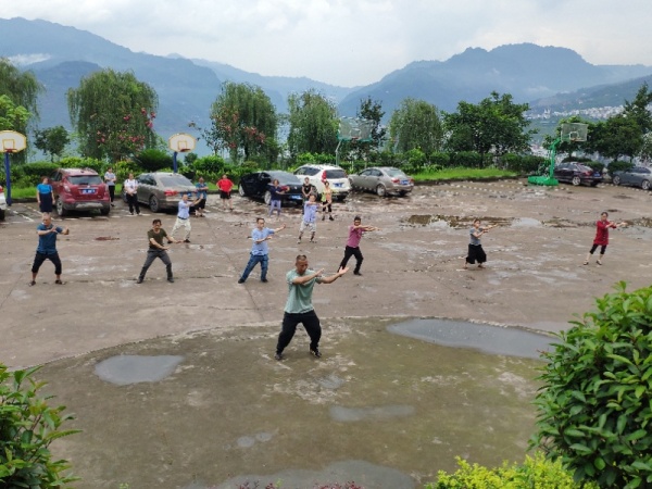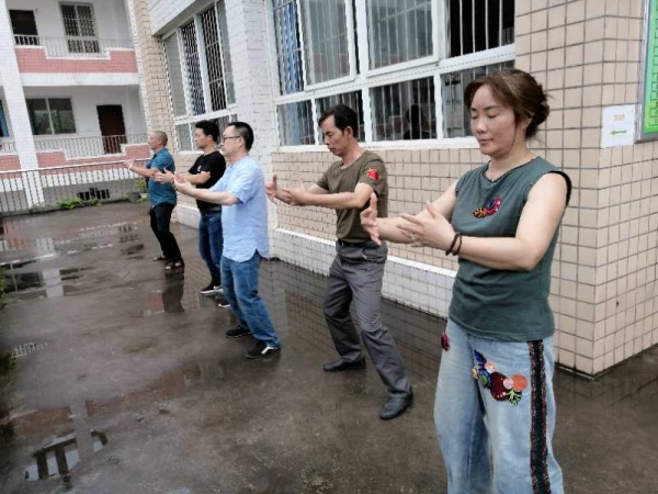 在下午放學(xué)后,苗老師還會(huì)教學(xué)校的全體老師學(xué)習(xí)太極拳。苗老師和牟村小學(xué)的老師們每天都會(huì)進(jìn)行太極拳基礎(chǔ)步法與腳法的交流和練習(xí),老師們?cè)谝粍?dòng)一靜、一呼一吸中,體會(huì)到了太極的魅力,同時(shí)也放松了身心。