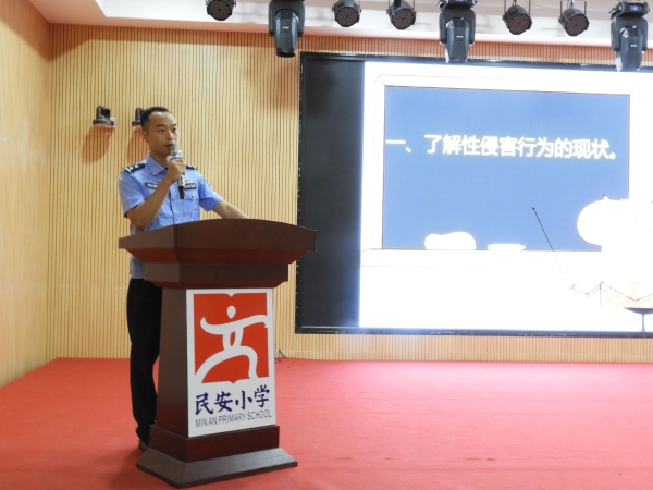 為持續(xù)深化法制教育,不斷豐富中小學(xué)生法律常識(shí)、安全意識(shí),增強(qiáng)法制觀念。2020年7月3日下午,南頭公安分局在南頭鎮(zhèn)民安小學(xué)組織開展小學(xué)法制教育系列講座活動(dòng),南頭公安分局治安大隊(duì)大隊(duì)長(zhǎng)馮杰平,南城派出所副所長(zhǎng)錢國(guó)飛、民警吳遠(yuǎn)東,民安社區(qū)黨委副書記梁發(fā)銳,市人大代表、民安小學(xué)校長(zhǎng)嚴(yán)玲珍出席了講座。