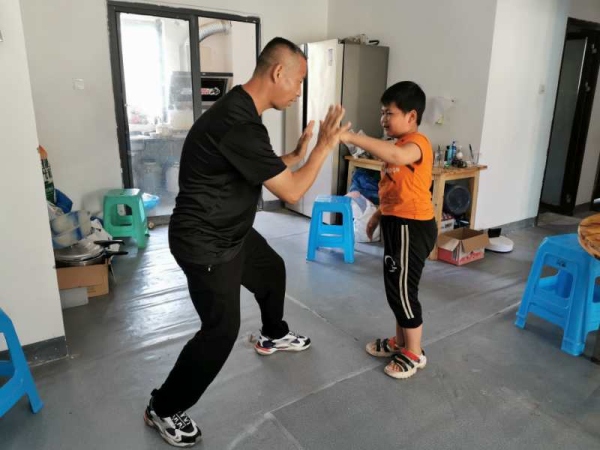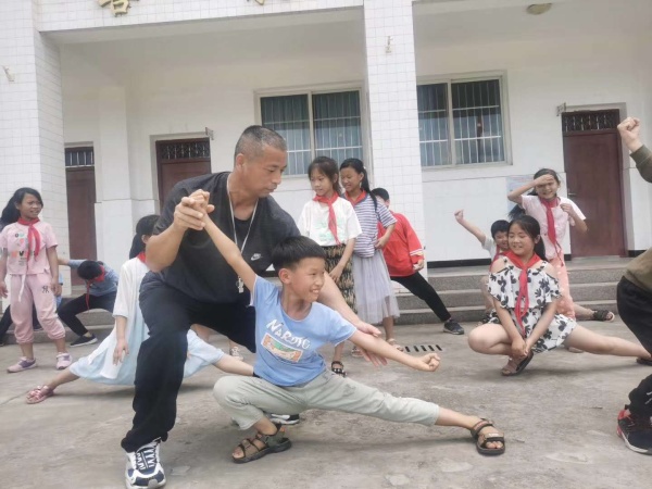 因支教老師數(shù)量有限,苗華林老師要擔(dān)起一周十節(jié)課的教學(xué)任務(wù),還要帶一個(gè)40多人的興趣班,下午放學(xué)后再教全體老師學(xué)太極拳,周末還要跟著當(dāng)?shù)氐睦蠋熑埣埠⒆蛹壹以L、送教上門。面對(duì)著毫不熟悉的孩子們,看到他們對(duì)武術(shù)的渴望與期待,決心要帶他們走進(jìn)中華傳統(tǒng)武術(shù)中,讓他們感受武術(shù)的魅力。當(dāng)面對(duì)那位因?yàn)楹⒆影职挚巢袼?,?dǎo)致破傷風(fēng)去世,媽媽改嫁后經(jīng)常遭到家暴的孩子把武術(shù)有板有眼時(shí);當(dāng)去到有智力障礙的孩子家中與他交談,給予孩子更多的關(guān)愛與鼓勵(lì)時(shí),苗老師說這是“累并快樂著”。