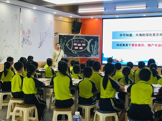 活動伊始,升輝小學周梓怡老師與三(4)班的孩子為大家展示了一節(jié)寓教于練的閱讀教學課例——部編版三年級下冊《海底世界》。周老師深入研讀教參文本,關(guān)注本單元語文要素的訓練。課堂上通過“以讀促悟、以讀促寫、以文帶文”層層遞進的練習拓展,達到落實語文核心素養(yǎng)的目標。課后周老師針對本節(jié)課教學設(shè)計進行說課,清晰的思路,凝練的語言、讓大家對課例有了更為深入的認識。