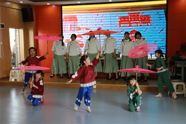 接著,與會老師共同欣賞了升輝小學(xué)師生帶來的傳統(tǒng)節(jié)目展演。展演上,童聲手勢舞演繹中華孝道;吟誦社團的吟詠讓人如癡如醉;低年級師生的《粵童謠》仿佛把大家?guī)У絻簳r無憂無慮的日子;中高年級的情景劇帶著大家穿越到宋朝,感受蘇軾的瀟灑。