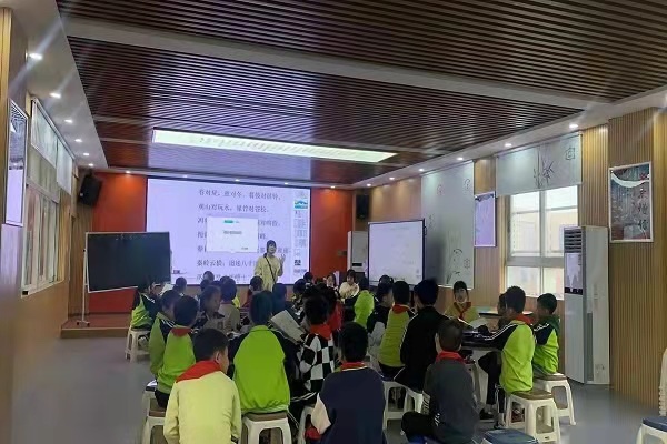 南頭鎮(zhèn)升輝小學(xué)梁春紅老師為這次活動(dòng)展示了課例《聲律啟蒙·二冬》。課堂上先由升輝小學(xué)的兩位音樂(lè)老師彈琵琶合唱韻文,讓學(xué)生感受韻文的聲律美,接著引入《二冬(其一)》這篇聲律啟蒙。課堂上梁老師用不同形式的讀讓學(xué)生感受到韻文的節(jié)奏美,理解韻文的意思。最后的古典小樂(lè)器伴奏更是把課堂引入了一個(gè)高潮,讓學(xué)生感受到中國(guó)古典樂(lè)器的神奇魅力。