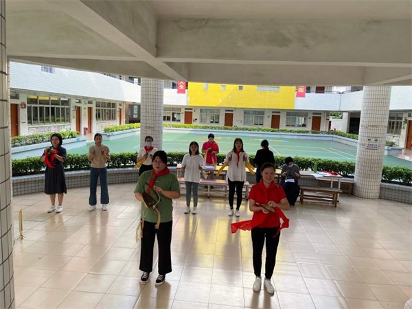 培訓(xùn)會(huì)上,省優(yōu)秀少先隊(duì)輔導(dǎo)員黃紅云首先為在座的輔導(dǎo)員們進(jìn)行了基礎(chǔ)的樂(lè)譜訓(xùn)練,隨后黃紅云老師分別就小鼓、大鼓、大镲、小镲手擊奏動(dòng)作及訓(xùn)練規(guī)范,以及指揮的動(dòng)作訓(xùn)練規(guī)范進(jìn)行了詳細(xì)的講解。黃老師深入淺出的講解讓參與學(xué)習(xí)的輔導(dǎo)員很快學(xué)會(huì)了要領(lǐng),接下來(lái)市優(yōu)秀輔導(dǎo)員陳簿新老師對(duì)大家進(jìn)行號(hào)手擊奏動(dòng)作及訓(xùn)練規(guī)范的培訓(xùn)。講解與實(shí)操相結(jié)合的教學(xué)大大提高了輔導(dǎo)員們的學(xué)習(xí)效率。輔導(dǎo)員們認(rèn)真學(xué)習(xí),并一一分小組練習(xí)。培訓(xùn)結(jié)束后,各校進(jìn)行了分校的展演,匯報(bào)學(xué)習(xí)成果。鏗鏘有力的鼓點(diǎn),嘹亮的號(hào)聲,輔導(dǎo)員們個(gè)個(gè)英姿颯爽,定格成一道道亮麗的風(fēng)景。