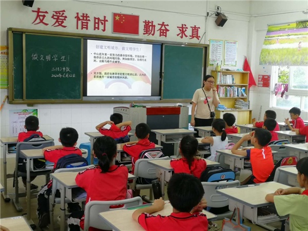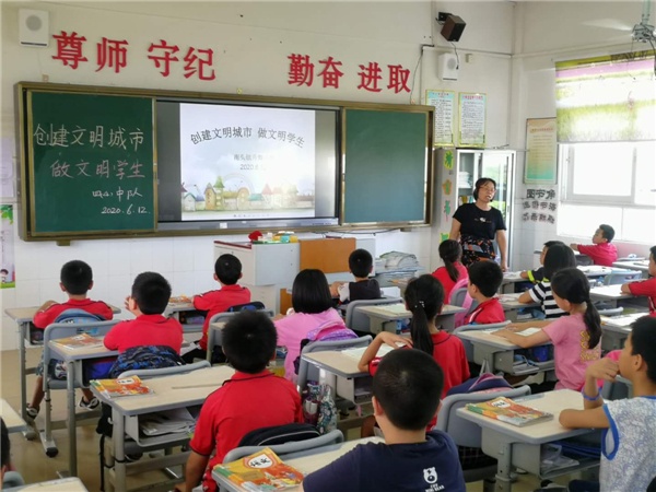 班會(huì)課上,各班主任們進(jìn)行創(chuàng)建文明城市知識(shí)宣傳,倡導(dǎo)學(xué)生們從自己做起,從小事做起,從身邊做起,爭(zhēng)當(dāng)文明小市民;通過(guò)PPT課件,讓學(xué)生懂得亂闖紅燈、亂吐亂扔、亂寫(xiě)亂畫(huà)、亂掛亂貼是影響環(huán)境衛(wèi)生的不文明行為,希望能通過(guò)孩子對(duì)不文明行為的勸導(dǎo),潛移默化地影響大人及家庭的文明行為,從而促進(jìn)城市文明創(chuàng)建活動(dòng)的開(kāi)展。