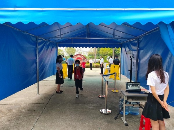 早上7點20分,升輝小學(xué)老師、同學(xué)們早早來到校園等待見面。為了確保安全,升輝小學(xué)4--6年級的學(xué)生錯峰回到了久別的校園。雖然早上下著毛毛細(xì)雨,但是絲毫沒有影響到同學(xué)們快樂復(fù)學(xué)的心情。在校門口,升輝小學(xué)的全體行政、班主任、老師及校醫(yī)早早到崗開展交通指引、測溫,指導(dǎo)學(xué)生保持1米安全距離入校。同學(xué)們分別通過手腕測溫儀、熱成像自動測溫通道文明有序地進(jìn)入校門。各班級教室門口,都為同學(xué)們準(zhǔn)備了洗手液、測溫儀等防疫用品,同學(xué)們安靜進(jìn)入班級課室并與同學(xué)保持安全距離。