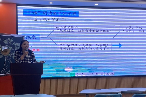 為進(jìn)一步落實(shí)“聚焦課堂,實(shí)現(xiàn)提質(zhì)”的教研目標(biāo),引導(dǎo)廣大教師關(guān)注并深入研究閱讀教學(xué),切實(shí)提升學(xué)生的語(yǔ)文素養(yǎng),提高小學(xué)語(yǔ)文閱讀教學(xué)的效益,3月22日南頭鎮(zhèn)升輝小學(xué)舉行南頭鎮(zhèn)小學(xué)語(yǔ)文閱讀教學(xué)專(zhuān)項(xiàng)研究工作室“低年級(jí)‘1+N’閱讀教學(xué)模式課例研討”活動(dòng),中山市南頭鎮(zhèn)督學(xué)、南頭鎮(zhèn)教育和體育事務(wù)中心教研員梁柳珍,南頭鎮(zhèn)鎮(zhèn)閱讀工作室的主持人余培淳、南頭鎮(zhèn)升輝小學(xué)校長(zhǎng)呂鑒添出席活動(dòng),南頭鎮(zhèn)小學(xué)語(yǔ)文閱讀教學(xué)專(zhuān)項(xiàng)研究工作室全體人員、南頭鎮(zhèn)升輝小學(xué)全體語(yǔ)文教師參加此次活動(dòng)。