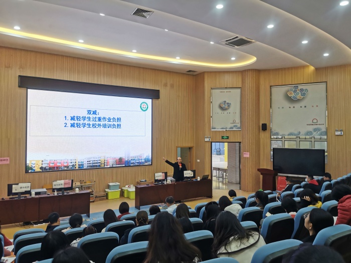 會上,郭建平副校長向全體教師重申了國家“雙減”和“五項(xiàng)管理”政策的相關(guān)規(guī)定,積極引導(dǎo)全體教師提高工作與服務(wù)標(biāo)準(zhǔn),落實(shí)“雙減”工作力度與效益的基礎(chǔ)上,堅(jiān)持遵循關(guān)于加強(qiáng)中小學(xué)生“五項(xiàng)管理”的通知要求,確保學(xué)校各項(xiàng)工作的穩(wěn)步推進(jìn)。郭副校長還對作業(yè)管理工作提出了明確的要求,一是嚴(yán)格作業(yè)布置,作業(yè)布置要有規(guī)范性、針對性和層次性,嚴(yán)禁給家長布置作業(yè)或要求批改作業(yè);二是優(yōu)化作業(yè)設(shè)計(jì),把握作業(yè)難度,提高作業(yè)質(zhì)量,由班主任負(fù)責(zé)協(xié)調(diào)科任老師統(tǒng)籌作業(yè)量,做好分層作業(yè)和作業(yè)時(shí)長的登記,三是嚴(yán)肅作業(yè)批改,要求老師們做到全批全改學(xué)生的書面作業(yè),精準(zhǔn)分析學(xué)生學(xué)情數(shù)據(jù),及時(shí)訓(xùn)練,開展個性化輔導(dǎo);采取集體講評、個別講解等方式有針對性地及時(shí)反饋;充分發(fā)揮作業(yè)反饋的育人功能、激勵和溝通功能,增進(jìn)學(xué)生對教師的信任,建設(shè)良好的師生關(guān)系,真正實(shí)現(xiàn)減負(fù)增效。