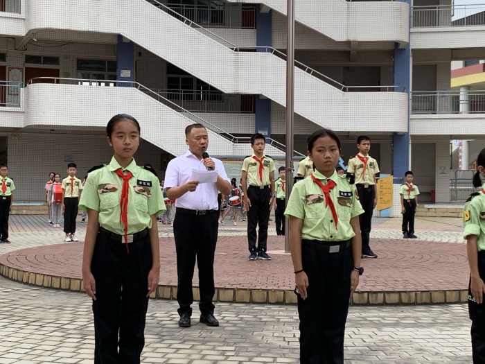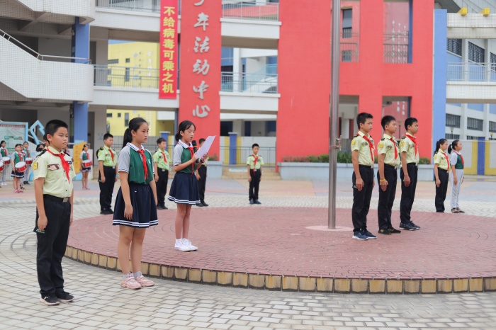 首先,中心小學(xué)全體師生整齊列隊(duì),國(guó)旗護(hù)衛(wèi)隊(duì)踏著整齊的步伐走向升旗臺(tái)。在雄壯的國(guó)歌聲中,學(xué)生們莊嚴(yán)目送國(guó)旗緩緩升起,鮮艷的五星紅旗迎風(fēng)飄揚(yáng),全體師生面向國(guó)旗行注目禮,向祖國(guó)表達(dá)最崇高的敬意。接著,六(4)的學(xué)生代表在國(guó)旗下發(fā)言。他號(hào)召全體少先隊(duì)員緬懷革命先烈,勿忘國(guó)恥、勵(lì)志圖強(qiáng),珍惜今天的幸福生活,激勵(lì)大家爭(zhēng)做文明學(xué)生,用實(shí)際行動(dòng)建設(shè)文明校園,共同為建設(shè)幸福南頭而努力奮斗。