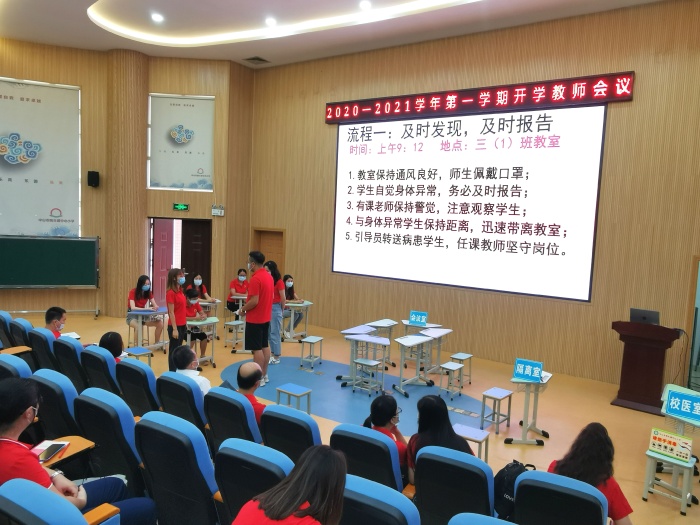 根據(jù)“早發(fā)現(xiàn)、早報告、早隔離、早治療”的原則,提高應(yīng)對新冠肺炎疫情防控的能力,學(xué)校疫情防控工作小組制定了秋季開學(xué)演練方案,本次演練以模擬學(xué)生課上出現(xiàn)異常情況,學(xué)校如何進行應(yīng)急處置為主。從“及時發(fā)現(xiàn),及時報告”、“復(fù)測發(fā)熱學(xué)生體溫,采取隔離措施,核實情況”、“逐級上報疫情,配合做好轉(zhuǎn)運工作”到“啟動應(yīng)急預(yù)警機制,召開應(yīng)急小組成員會議”,全體人員按照應(yīng)急演練方案和相關(guān)規(guī)范流程,密切配合,反應(yīng)迅速,緊張有序,分工明確,做好各項應(yīng)急處置工作。包括后續(xù)對因病缺勤師生進行一對一建檔跟進,掌握健康狀況,返校前做好健康查驗工作,學(xué)校都周密地制定了計劃。