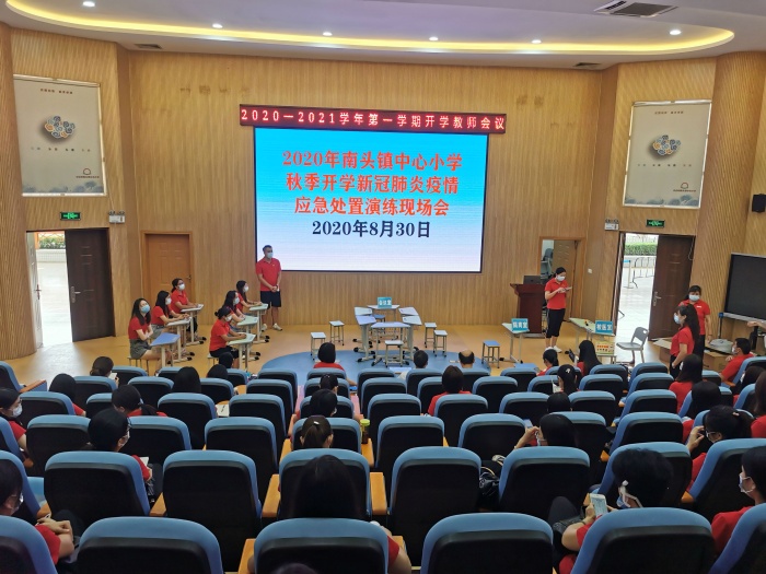 天高氣爽迎生歸,平安校園齊創(chuàng)建。為扎實做好2020年秋季開學(xué)準備工作,提高老師們的疫情防范和應(yīng)急處置能力,切實保障全校師生返校后的健康和安全,按照學(xué)校要求和工作安排,8月30日上午,南頭鎮(zhèn)中心小學(xué)舉行秋季開學(xué)新冠肺炎疫情應(yīng)急處置演練。