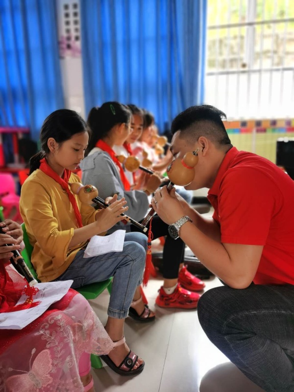 吳老師想既然來(lái)了總要留點(diǎn)什么下來(lái),計(jì)劃開(kāi)設(shè)學(xué)校葫蘆絲社團(tuán),并把自己的想法與校長(zhǎng)進(jìn)行溝通,由于學(xué)校經(jīng)費(fèi)有限,向上級(jí)領(lǐng)導(dǎo)申請(qǐng),最后得到教育局吳股長(zhǎng)的支持。孩子們雖然沒(méi)有學(xué)習(xí)過(guò)音樂(lè)知識(shí),每個(gè)音、手型、節(jié)奏、呼吸、演奏方法等,學(xué)生們都是零基礎(chǔ),這不得不讓吳老師一個(gè)音一個(gè)音,一個(gè)手指一個(gè)手指地教,短短的一周葫蘆絲學(xué)習(xí)中,孩子們基本掌握一首簡(jiǎn)短的歌曲。除了學(xué)生,學(xué)校老師甚至校長(zhǎng)都參加了學(xué)習(xí),這讓吳老師非常感動(dòng)。