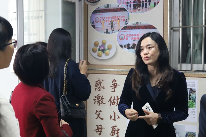為了更好地交流,順德區(qū)容桂鎮(zhèn)紅旗中學(xué)陳亞玲校長、鐘春玲副校長、陳國佳德育主任等行政團隊精心準備了勞動實踐基地實地參觀、勞動教育課題專題講座、經(jīng)驗分享與答疑的優(yōu)質(zhì)交流活動,并親自引領(lǐng)老師們到相應(yīng)的場室參觀學(xué)習(xí)。參加活動的老師們專注地聆聽陳校長的介紹,認真記錄開展勞動教育活動的細節(jié),感受陳校長對學(xué)校勞動教育高瞻遠矚的總體設(shè)計,以此進行思考借鑒。