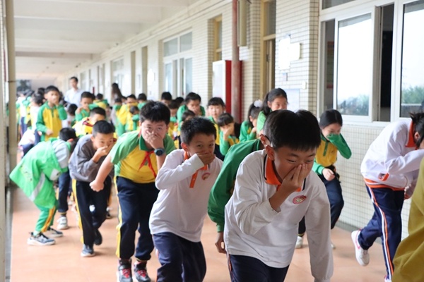 演練前,學校對演練進行了精心策劃和嚴密組織,明確了演練步驟和疏散路線。隨著“警報聲”響起,消防安全應(yīng)急疏散演練正式開始!同學們在各班老師的組織下,捂著口鼻、貓著腰、分樓道,按照事先設(shè)定的疏散路線快速、有序的撤離,到達安全區(qū)域后,老師立刻清點人數(shù)并及時上報。整個演練過程嚴肅、認真、緊張、高效,全校師生安全有序到達疏散的指定地點。