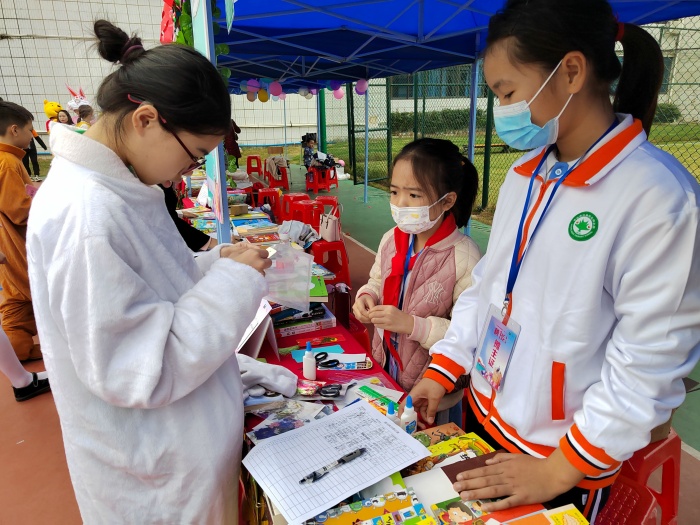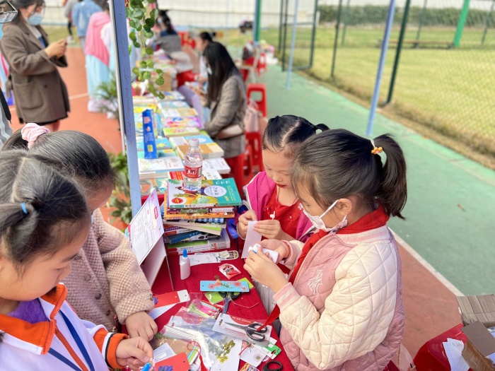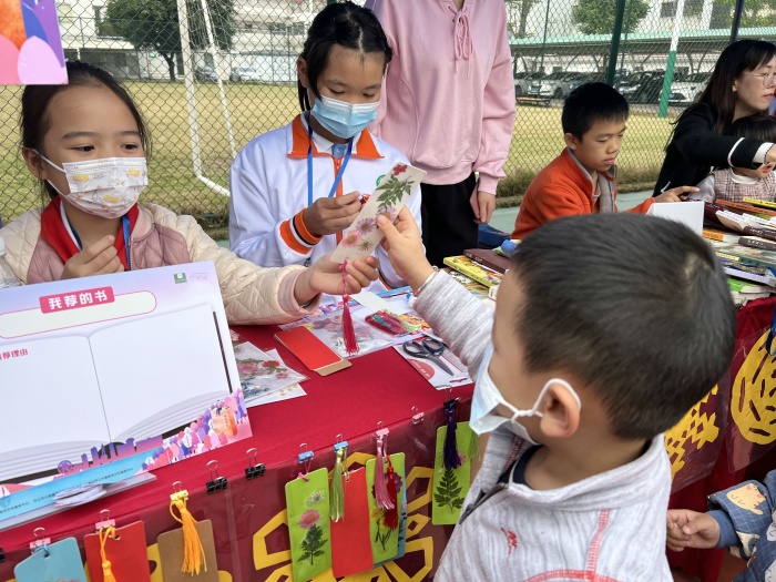 曬書會(huì)上,老師、家長(zhǎng)和同學(xué)們有的在學(xué)校的攤位上熱情地推薦好書;有的拿著自己的書去其他攤位交換自己喜歡的書籍,互相交流讀書心得。