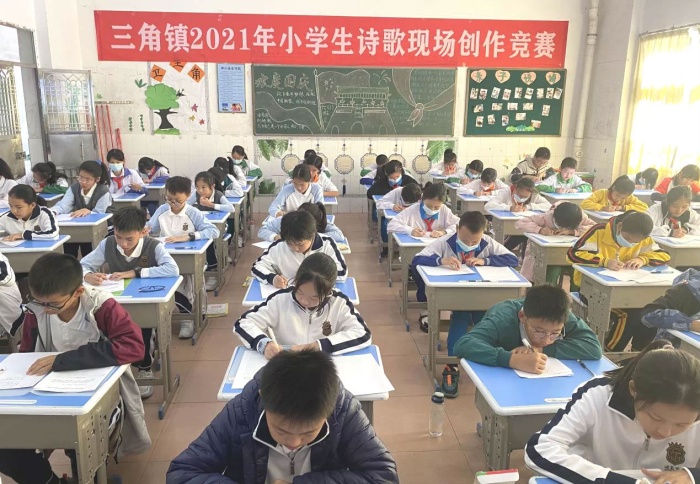 參賽的7名同學(xué)是學(xué)校通過初賽選拔的,個(gè)個(gè)從容鎮(zhèn)定,胸有成竹。在比賽現(xiàn)場,他們認(rèn)真審題,有時(shí)奮筆疾耕,有時(shí)斟酌字句,一顆童心,一雙慧眼,一支妙筆,一紙?jiān)囶},把美好的愿望化作童真童趣,盡情展露學(xué)生稚嫩的文采!