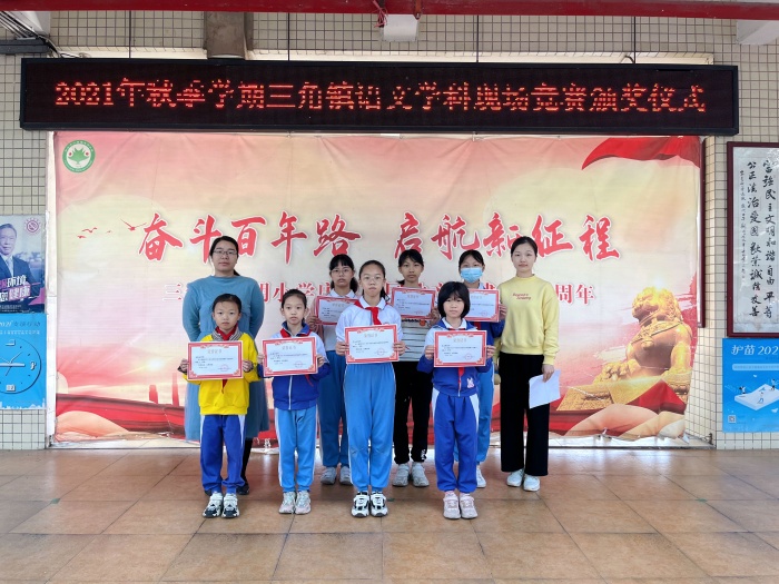 為進(jìn)一步推進(jìn)閱讀課程和書香校園建設(shè),培養(yǎng)學(xué)生“愛讀書、勤讀書、讀好書、提升閱讀寫作素養(yǎng)”的學(xué)習(xí)主體意識(shí),11月10日下午,三角鎮(zhèn)在四海學(xué)校舉辦主題為“妙筆書童真,書香進(jìn)校園”四至六年級(jí)語文綜合能力競賽。光明小學(xué)選派了7名同學(xué)參加現(xiàn)場角逐,均獲佳績。