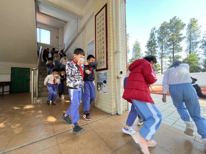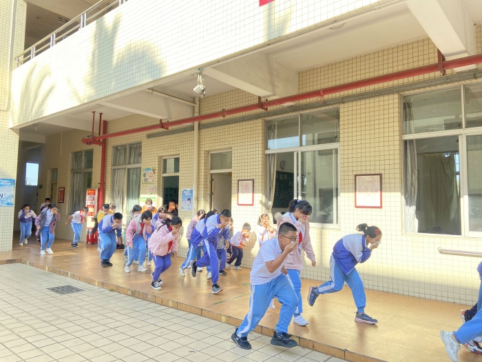 下午3點(diǎn),“火情”突現(xiàn),刺耳的警報(bào)聲隨即響徹校園,全體人員嚴(yán)格執(zhí)行突發(fā)事件應(yīng)急預(yù)案,各班主任老師到達(dá)班級(jí)協(xié)助任課老師組織學(xué)生疏散,班主任在前帶領(lǐng)學(xué)生彎著腰,用濕巾或袖口等捂住口鼻,沿著學(xué)校指定的路線、有序地撤離到學(xué)校操場(chǎng),隨即各班主任老師清點(diǎn)人數(shù),僅用時(shí)1分46秒,全校師生安全疏散完畢,整個(gè)逃生過(guò)程迅速而有序。