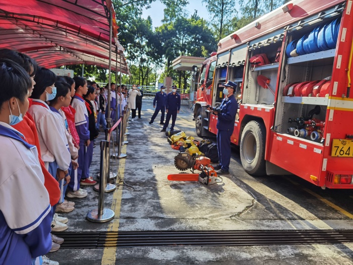 隨后,中山市消防救援支隊(duì)三角大隊(duì)的消防員現(xiàn)場(chǎng)還演示正確使用滅火器、消防器材,并邀請(qǐng)學(xué)生與老師進(jìn)行正確使用滅火器滅火演練。
