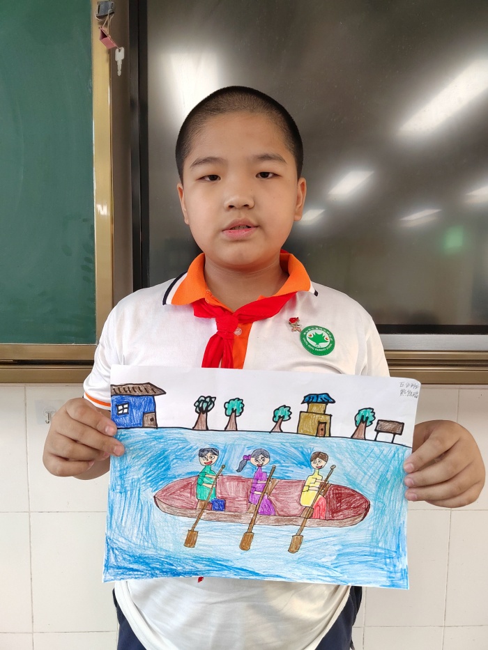 隨后,同學(xué)們在蕭老師的指導(dǎo)下,精心繪制圖畫,一幅幅主題分明、飽含真情的畫作呈現(xiàn)在畫紙上,抒發(fā)著對三人根艇文化的熱愛之情。