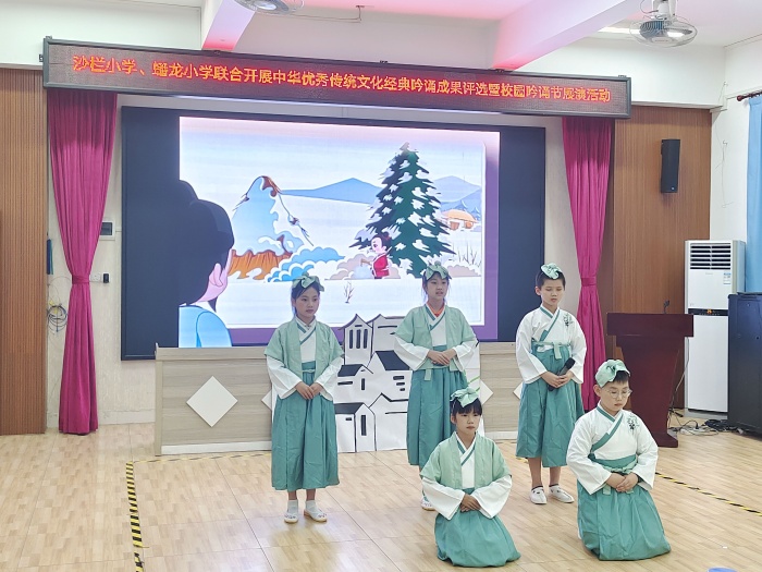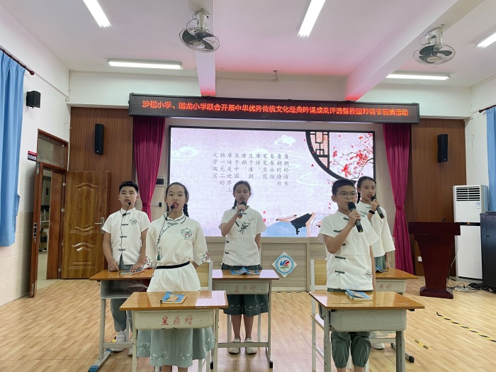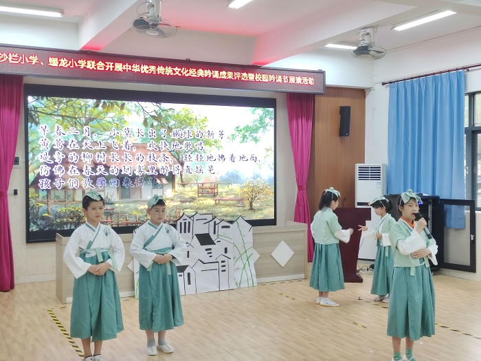 四月正是春暖花開、萬物生長的季節(jié),書香彌漫校園里,我們捧起書本,細(xì)心品讀,感受者古詩中最美的景、最美的情。4月11日,三角鎮(zhèn)蟠龍小學(xué)與三角鎮(zhèn)沙欄小學(xué)聯(lián)合開展中華優(yōu)秀傳統(tǒng)文化經(jīng)典吟誦成果展演。