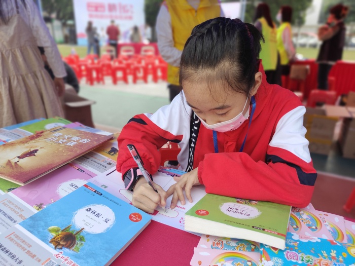 曬書(shū)會(huì)上,陳列著琳瑯滿目的圖書(shū)供孩子們交換,種類繁多,涵蓋散文、小說(shuō)、詩(shī)集、童話、勵(lì)志圖書(shū)等等,多元化的書(shū)目吸引著眾多的孩子圍在曬書(shū)書(shū)攤前觀看,形成了一道別致亮麗的風(fēng)景。同學(xué)們把自己喜歡的書(shū)拿出來(lái),相互推薦,相互交換,分享讀書(shū)樂(lè)趣。他們臉上洋溢著滿足與快樂(lè)的笑容,整個(gè)活動(dòng)現(xiàn)場(chǎng)蕩漾著濃濃的書(shū)香。同學(xué)們都陶醉在書(shū)籍的海洋里,自由自在地快樂(lè)遨游……三角小學(xué)“百草閣”和“悅讀閣”兩個(gè)書(shū)攤分別獲得了“優(yōu)秀書(shū)蟲(chóng)獎(jiǎng)”和“最強(qiáng)分享獎(jiǎng)”兩項(xiàng)榮譽(yù)。