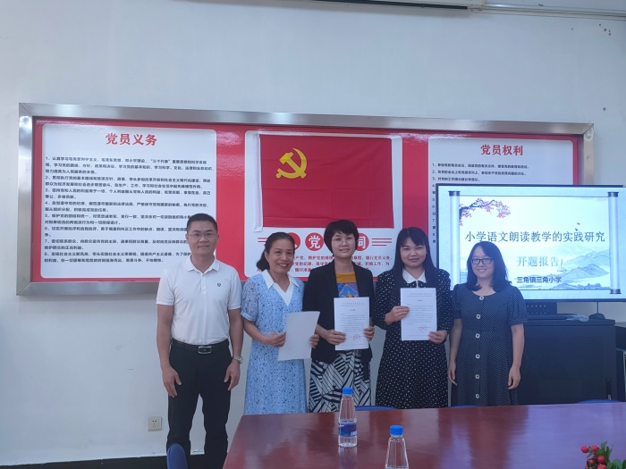 為提升教師專業(yè)水平,幫助教師有效解決課堂問題,提高教師的整體素養(yǎng),2021年10月12日上午,三角鎮(zhèn)三角小學(xué)召開語文科“小學(xué)生古詩詞鑒賞能力的培養(yǎng)研究”、“小學(xué)語文朗讀教學(xué)的實(shí)踐研究”和英語科“故事教學(xué)法在小學(xué)英語閱讀教學(xué)中的應(yīng)用”三個(gè)鎮(zhèn)級(jí)課題開題報(bào)告會(huì)。三角鎮(zhèn)教育和體育事務(wù)中心梁文副主任、英語教研員吳萍老師、三角小學(xué)領(lǐng)導(dǎo)及課題組成員出席了本次報(bào)告會(huì)。