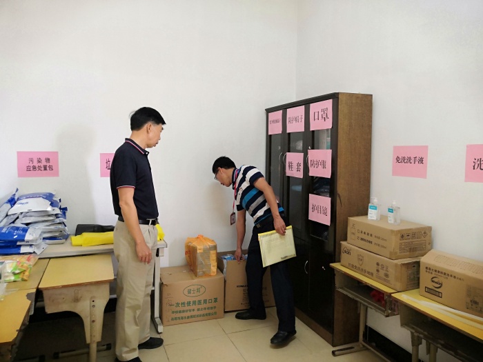 梁炳華督學(xué)先后視察了入校測(cè)溫點(diǎn),防疫物資儲(chǔ)備室,教師辦公室,學(xué)校教室、功能室、操場(chǎng)和后山,以及校園安全防范設(shè)施等等,詳細(xì)詢問了學(xué)校近期各項(xiàng)工作的開展情況,以及存在的現(xiàn)實(shí)困難與問題。過程中,何應(yīng)文主任對(duì)防疫物資儲(chǔ)備情況以及消防安全設(shè)施建設(shè)作了細(xì)致講解;陳寶瑩主任將當(dāng)前學(xué)校的教育教學(xué)情況逐一反饋;王輝副校長(zhǎng)就學(xué)校如何貫徹落實(shí)國(guó)家教育法律法規(guī)和三角鎮(zhèn)教體文旅局重點(diǎn)工作、課程開設(shè)、特色建設(shè)等方面進(jìn)行了簡(jiǎn)單的工作匯報(bào)。