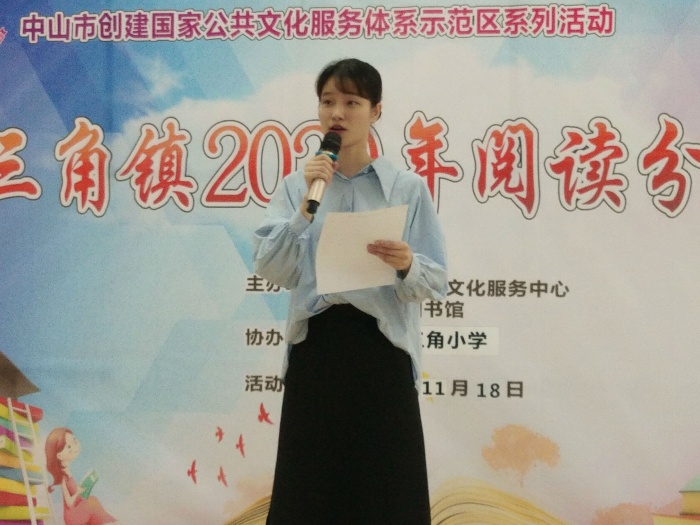 為創(chuàng)建國家公共文化服務(wù)體系示范區(qū),深入實施素質(zhì)教育,創(chuàng)建良好校園文化,營造濃郁讀書氛圍,由三角鎮(zhèn)宣傳文化服務(wù)中心、三角鎮(zhèn)圖書館主辦,三角鎮(zhèn)三角小學(xué)協(xié)辦的主題為“書香伴我成長”悅讀分享活動,于2020年11月18日下午兩點在三角小學(xué)階梯教室舉行。本次活動由少先隊大隊輔導(dǎo)員廖樂詩老師及六(3)班趙文熙同學(xué)主持。三角鎮(zhèn)圖書館館長林贊昌、三角小學(xué)王輝副校長、陳寶瑩主任、楊穗珊副主任以及三角小學(xué)部分師生參加了此次活動。
