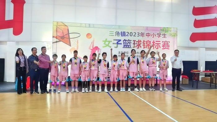 為提高三角鎮(zhèn)中小學(xué)生籃球運(yùn)動水平,2023年3月6日三角鎮(zhèn)中小學(xué)生女子籃球錦標(biāo)賽隆重舉行。經(jīng)過4天的激烈角逐,3月9日上午,三角小學(xué)和光明小學(xué)女子籃球隊(duì)在P.PARK球館舉行冠軍爭奪戰(zhàn),三角小學(xué)女子籃球隊(duì)勇奪本次錦標(biāo)賽小學(xué)組冠軍。