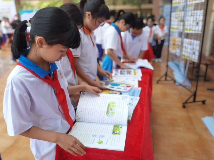 為了拓寬學(xué)生的視野、增長他們的見識(shí),為了讓他們的才華和熱情如花綻放,體驗(yàn)文字帶來的幸福和成長,三角小學(xué)以此次巡展為契機(jī),以校園文學(xué)活動(dòng)為切入點(diǎn),在巡展當(dāng)天,開展系列文學(xué)社活動(dòng),展示全鎮(zhèn)各校文學(xué)社風(fēng)采及成效,展出的作品形式和內(nèi)容豐富多彩,如文學(xué)社章程、學(xué)生讀書筆記、采風(fēng)佳作等作品百花齊放、各具特色。展覽現(xiàn)場(chǎng),吸引了眾多學(xué)生駐足觀展,孩子們輕輕捧起一份份精美的作品細(xì)細(xì)觀賞。明亮活潑的色彩、圖文并茂的展出方式,為學(xué)生們搭建了豐富多彩的心靈世界,引導(dǎo)他們走近文學(xué),感受寫作的快樂,探索遼闊的文學(xué)空間和瑰麗多姿的世界萬物。
