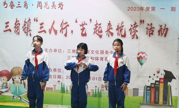 4月1日,由三角鎮(zhèn)宣傳文化服務(wù)中心、三角鎮(zhèn)教育和體育事務(wù)中心、三角鎮(zhèn)圖書館聯(lián)合主辦的2023年度“三人行,‘藝’起來悅讀”活動第一期如約在中山市文化館三角鎮(zhèn)分館舉行。三角小學海鷗文學社的十多位社員和家長們同臺競技,一起“藝”起來,讓悅讀越精彩。