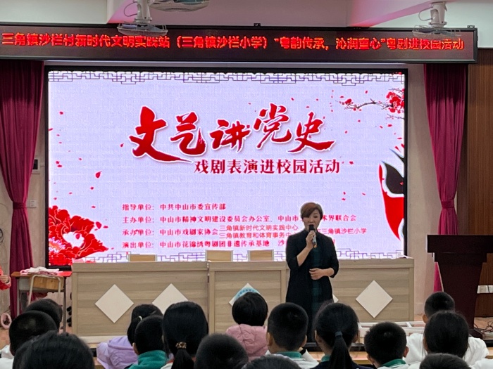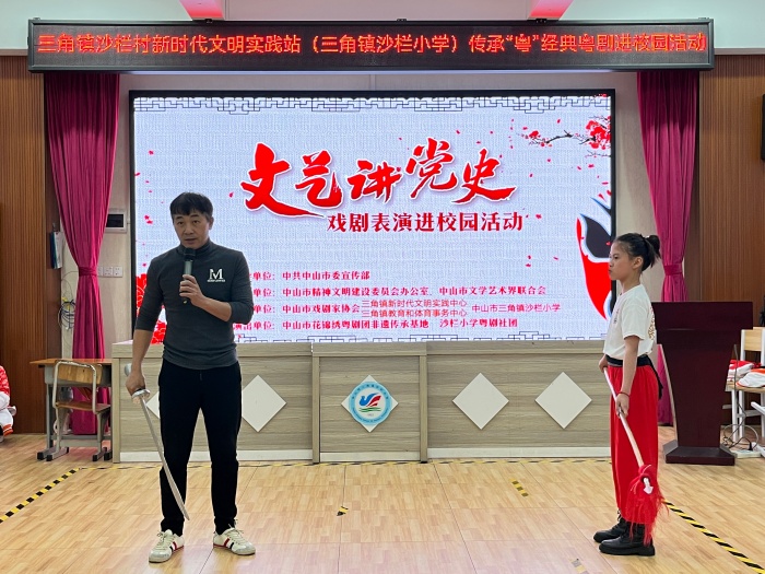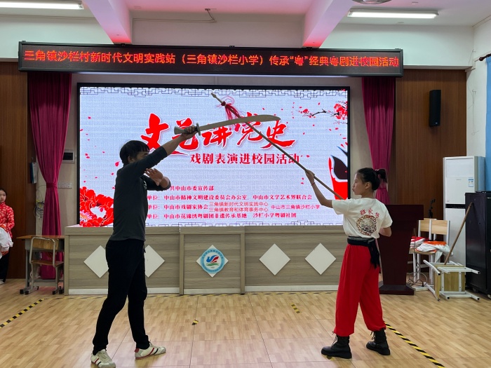 為了進(jìn)一步展現(xiàn)中華優(yōu)秀傳統(tǒng)文化,豐富校園生活,培養(yǎng)孩子們的戲曲素養(yǎng),提高學(xué)校師生對粵劇文化的了解,3月28日下午,中山市花錦繡粵劇團(tuán)非遺傳承基地的老師們,為三角鎮(zhèn)沙欄小學(xué)師生們帶來了一場精彩紛呈的視聽盛宴!讓學(xué)生看粵劇、聽粵劇、學(xué)粵劇、親身體驗(yàn)粵劇。