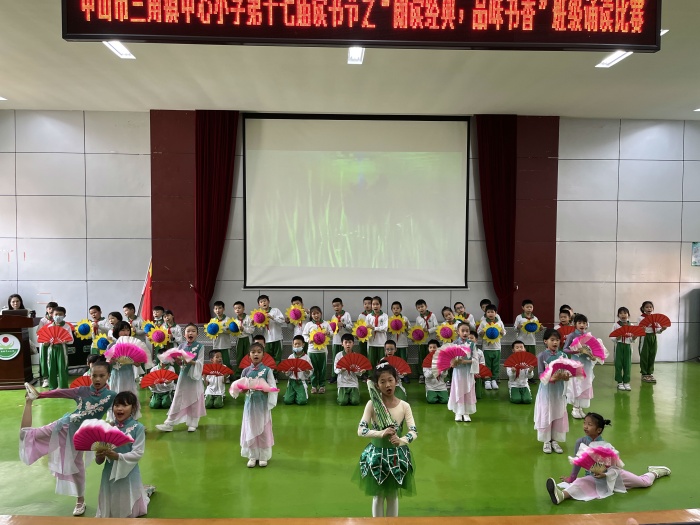 為弘揚(yáng)祖國優(yōu)秀的傳統(tǒng)文化,讓學(xué)生在誦讀過程中獲得古詩文經(jīng)典的基本熏陶和修養(yǎng),提高文化和道德素質(zhì),增強(qiáng)民族自信心和自豪感。三角鎮(zhèn)中心小學(xué)于5月18日下午在學(xué)校階梯室舉行第十七屆讀書節(jié)之“朗誦經(jīng)典,品味書香” 班級經(jīng)典誦讀比賽活動。