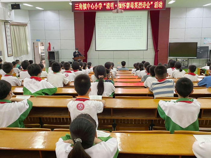 “清明不忘英烈恩,換來春風(fēng)慰忠魂”。有一些名字,應(yīng)當(dāng)被永久銘記,有一種精神,應(yīng)當(dāng)被永世銘刻。當(dāng)我們享受著靜謐祥和的生活時,有這樣一群人,面對窮兇極惡的毒販,將生死置之度外,逆向而行;面對繁重的工作,默默地燃盡了最寶貴的青春。又是一年清明時,為緬懷革命先烈,加強(qiáng)愛國主義教育,引導(dǎo)學(xué)生樹立正確的世界觀、人生觀、價值觀,三角鎮(zhèn)中心小學(xué)于2022年3月30日下午開展“清明·緬懷禁毒英烈詩會”活動。三角鎮(zhèn)綜治辦副主任、司法所副所長林偉平、中心小學(xué)校長吳博事、中心小學(xué)法制副校長梁家偉、沙欄派出所、中心小學(xué)德育副校長段美娟及三角鎮(zhèn)禁毒辦、致善社工的工作人員出席了本次活動。