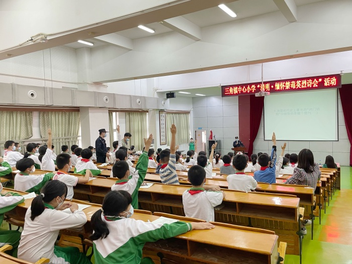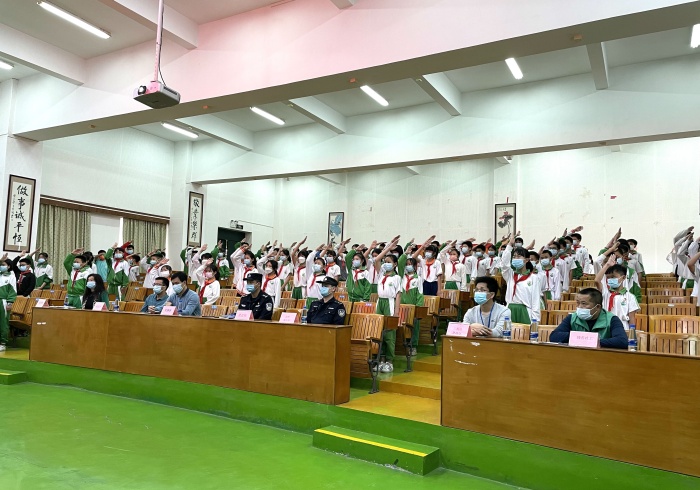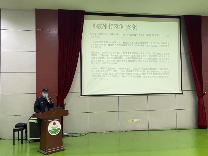活動第一項(xiàng)議程,學(xué)校法制副校長梁嘉偉為同學(xué)們分享了吸毒案例,隨后進(jìn)行了激烈的有獎問答活動,讓學(xué)生全面系統(tǒng)地了解我國毒品的來源、毒品的種類,毒品給個人、家庭和社會帶來的巨大危害,使學(xué)生對毒品知識與毒品危害有了深刻的認(rèn)識。緊接著,他帶領(lǐng)學(xué)生進(jìn)行宣誓。鏗鏘誓言在階梯教室上空飄蕩,響徹校園。學(xué)生們表示將用堅(jiān)定的信念和堅(jiān)強(qiáng)的意志捍衛(wèi)著烈士們的榮譽(yù),用堅(jiān)持不懈的努力傳承英烈們的革命事業(yè),珍惜現(xiàn)在的幸福生活,懷著一顆感恩的心,好好學(xué)習(xí),長大后為祖國的建設(shè)貢獻(xiàn)力量。隨后,與會人員一同觀看了禁毒英烈宣傳片。