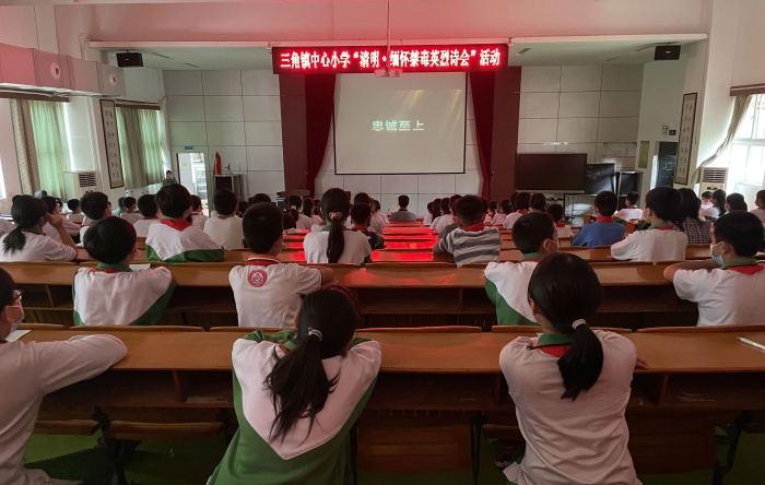 活動第二項(xiàng)議程是全體同學(xué)為禁毒英烈們送上詩歌朗誦。在聆聽完法制副校長的發(fā)言后,學(xué)生們深刻了解到,多數(shù)禁毒英烈,都是在抓捕毒販過程中與毒販搏斗時壯烈犧牲,或因?yàn)槌D昝β刀虿奚?。禁毒英烈們用他們的無畏與勇敢、責(zé)任和擔(dān)當(dāng),書寫了一部可歌可泣的禁毒英雄之歌。中心學(xué)子把心中的滿腔敬意化為深情的朗誦,為禁毒英烈們送上最誠摯的敬意!