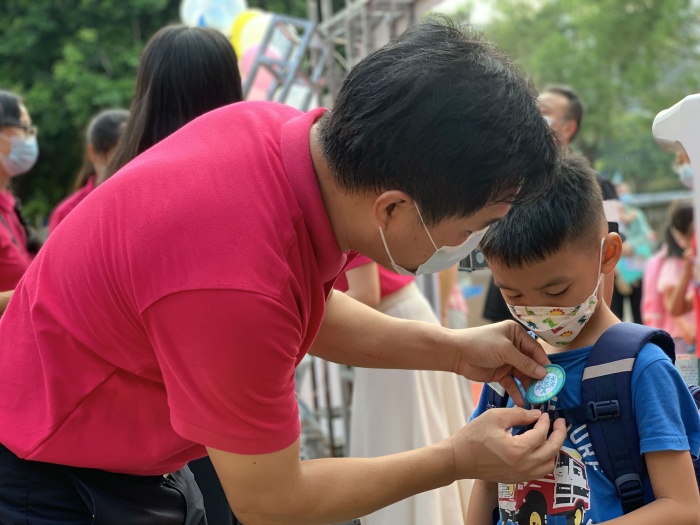 開學(xué)禮活動分為鏡頭傳樂、戴入學(xué)紀念徽章、跨“三愿”欄三個環(huán)節(jié)。
