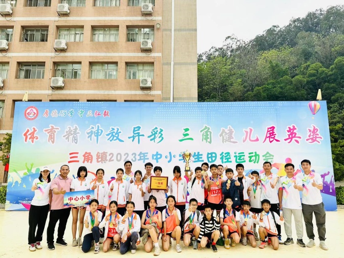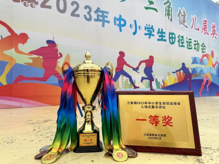 為全面貫徹黨的教育方針,增進學(xué)生體質(zhì)健康意識,提高中小學(xué)生田徑運動競技水平,培養(yǎng)體育后備人才,2023年3月17日,三角鎮(zhèn)中小學(xué)生田徑運動會在三角中學(xué)舉行。本次運動會有來自全鎮(zhèn)中小學(xué)校共227名運動員圍繞12個運動項目展開角逐。三角鎮(zhèn)中心小學(xué)的學(xué)子們也在這場運動會中展示出良好的精神面貌。