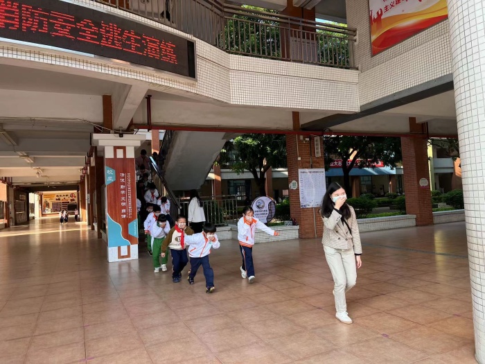隨著急促的警報聲響起,廣播發(fā)出逃生指令,各班學生在老師們的帶領(lǐng)下迅速就近從教室前后門跑出。樓道上,學生們彎著腰,用手帕捂住口鼻,彎腰前行,沿著指定路線快速疏散,有序地撤離到安全地帶,并按班級快速站好。班主任迅速清點本班學生人數(shù),向負責行政匯報各班應(yīng)到和實到人數(shù),確保每一名學生都已安全撤離教學樓。全校1763名師生在短短的2分鐘內(nèi)全部按照預定的疏散路線,安全撤離到指定地點。整個疏散過程中,沒有發(fā)生擁擠推搡現(xiàn)象,過程井然有序,真正地做到了快、靜、齊。