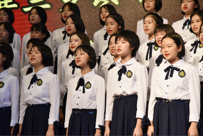 此次合唱比賽,充分體現(xiàn)了同學(xué)們的團(tuán)隊(duì)協(xié)作精神和勤奮努力的優(yōu)良作風(fēng)。備賽之時(shí),學(xué)校合唱隊(duì)經(jīng)歷了近兩個(gè)月的緊張排練,付出了大量了時(shí)間與精力。終功夫不負(fù)有心人,合唱隊(duì)在比賽中取得了第二名的佳績(jī)。身穿白色制服的隊(duì)員們帶著自信的步伐登上舞臺(tái),在黃高覺老師出色的指揮下,鋼琴手優(yōu)美地敲響一個(gè)個(gè)琴鍵,臺(tái)上的小小歌唱者們完美發(fā)揮,姿態(tài)優(yōu)雅的她們,以充滿著自信的臉龐配上那悠揚(yáng)歌聲,每一句歌詞似乎都能深深打動(dòng)在場(chǎng)觀眾和評(píng)委的心。臺(tái)上一分鐘,臺(tái)下十年功。自然流暢的表演,凝聚著老師和隊(duì)員們智慧與汗水。