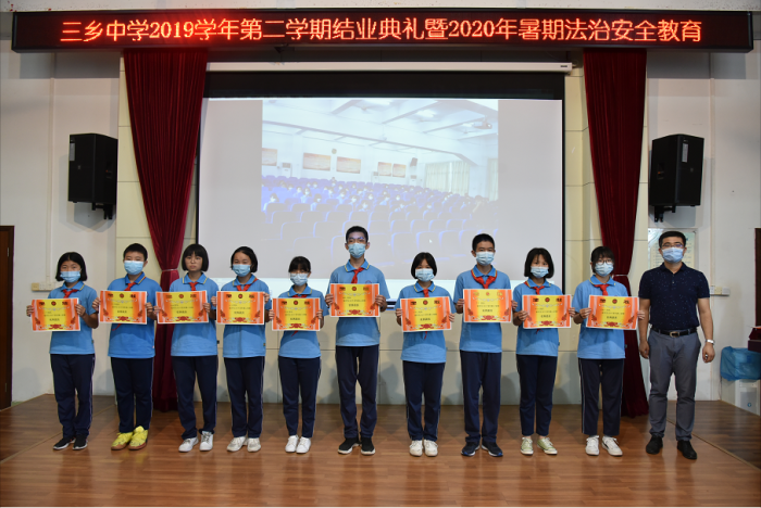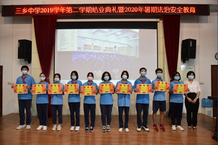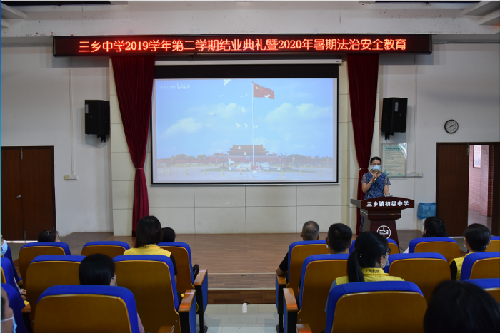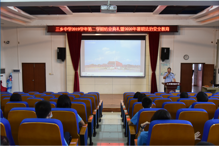 新冠疫情擋不住時(shí)光匆匆,期末悄然而至。7月17日上午,三鄉(xiāng)鎮(zhèn)初級(jí)中學(xué)舉行了2019—2020學(xué)年第二學(xué)期結(jié)業(yè)禮暨暑假安全法治教育。主會(huì)場(chǎng)設(shè)在二樓階梯室,各年級(jí)課室為分會(huì)場(chǎng),豐杰校長(zhǎng)、法制副校長(zhǎng)樊朝暉警官等學(xué)校領(lǐng)導(dǎo)與會(huì),大會(huì)由德育處楊玉韶主任主持。