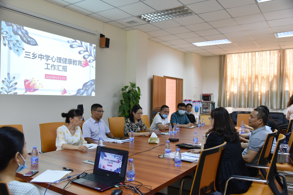 為進(jìn)一步貫徹落實(shí)《中小學(xué)心理健康教育指導(dǎo)綱要(2012年修訂)》文件,加強(qiáng)學(xué)生心理健康教育工作,引導(dǎo)廣大學(xué)生健康、快樂成長。同時(shí),強(qiáng)化心理健康教育工作成效,促進(jìn)學(xué)校心理健康教育工作水平整體提升。三鄉(xiāng)中學(xué)于2020年6月24日下午接受鎮(zhèn)文體教育局心理健康調(diào)研小組的評(píng)估。鎮(zhèn)心理健康調(diào)研小組由三鄉(xiāng)鎮(zhèn)教工黨委梁添帶副書記、德育專干林雪萍老師和兄弟學(xué)校的3位心理老師組成,三鄉(xiāng)中學(xué)校長室、德育處、年級(jí)組等部門負(fù)責(zé)人以及心理老師、班主任等參加本次調(diào)研評(píng)估。