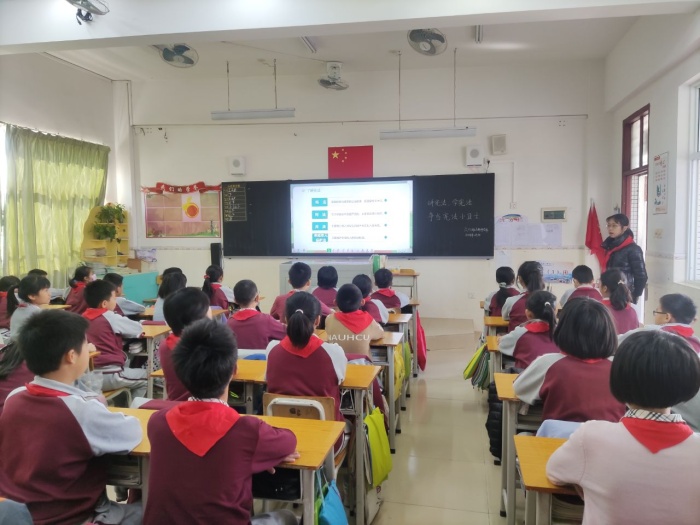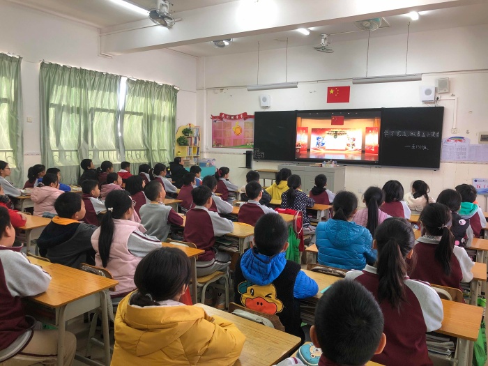 12月3日上午9:00組織全校師生一起觀看教育部在北京舉辦的“憲法晨讀”活動,觀看莊嚴的升旗儀式,一起進行憲法晨讀,一起哼唱《憲法伴我們成長》這首歌曲,從歌詞中領會法給人們帶來的幸福感、莊嚴感,立志要做一個合法的小公民,做文明的新圩水滴娃,為社會、為校園和諧貢獻自己的一份力量!